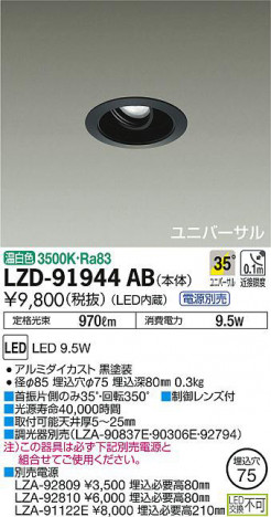 DAIKO Âç¸÷Åŵ¡ ¥æ¥Ë¥Ð¡¼¥µ¥ë¥À¥¦¥ó¥é¥¤¥È LZD-91944AB