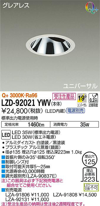 ¢£ÊÌÇäÅŸ»¡¡LZA-91806 ¡ï11¡¤000¡¡LZA-91808 ¡ï14¡¤500¡¡LZA-92131 ¡ï11¡¤000¡¢Ãí¡Ë¼õÃíÀ¸»ºÉʤÎǼ´ü¤Ï¼õÃí¸å2½µ´ÖÄøÅ٤Ǥ¹¡£¡¢É¸½à½ÐÎÏÅŸ»»ÈÍÑ»þ¡¡Äê³Ê¸÷« 1460lm¡¡¾ÃÈñÅÅÎÏ 35W¡¢Ra96