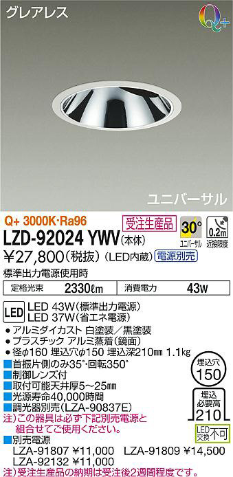 ¢£ÊÌÇäÅŸ»¡¡LZA-91807 ¡ï11¡¤000¡¡LZA-91809 ¡ï14¡¤500¡¡LZA-92132 ¡ï11¡¤000¡¢Ãí¡Ë¼õÃíÀ¸»ºÉʤÎǼ´ü¤Ï¼õÃí¸å2½µ´ÖÄøÅ٤Ǥ¹¡£¡¢É¸½à½ÐÎÏÅŸ»»ÈÍÑ»þ¡¡Äê³Ê¸÷« 2330lm¡¡¾ÃÈñÅÅÎÏ 43W¡¢Ra96