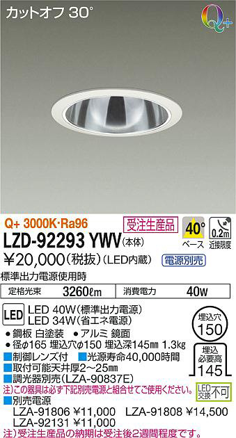 ¢£ÊÌÇäÅŸ»¡¡LZA-91806 ¡ï11¡¤000¡¡LZA-91808 ¡ï14¡¤500¡¡LZA-92131 ¡ï11¡¤000¡¢Ãí¡Ë¼õÃíÀ¸»ºÉʤÎǼ´ü¤Ï¼õÃí¸å£²½µ´ÖÄøÅ٤Ǥ¹¡£¡¢É¸½à½ÐÎÏÅŸ»»ÈÍÑ»þ¡¡Äê³Ê¸÷« 3260lm¡¡¾ÃÈñÅÅÎÏ 40W¡¢Ra96