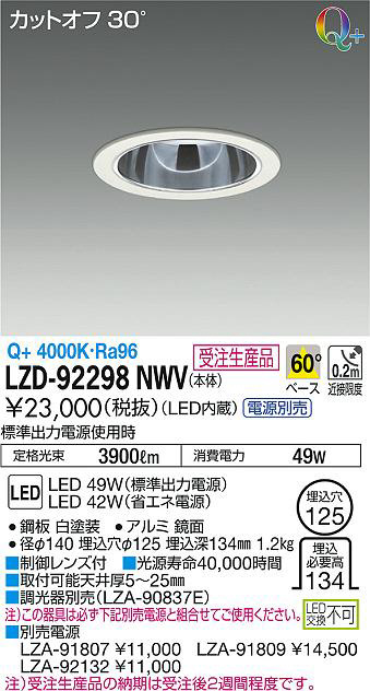 ¢£ÊÌÇäÅŸ»¡¡LZA-91807 ¡ï11¡¤000¡¡LZA-91809 ¡ï14¡¤500¡¡LZA-92132 ¡ï11¡¤000¡¢Ãí¡Ë¼õÃíÀ¸»ºÉʤÎǼ´ü¤Ï¼õÃí¸å£²½µ´ÖÄøÅ٤Ǥ¹¡£¡¢É¸½à½ÐÎÏÅŸ»»ÈÍÑ»þ¡¡Äê³Ê¸÷« 3900lm¡¡¾ÃÈñÅÅÎÏ 49W¡¢Ra96