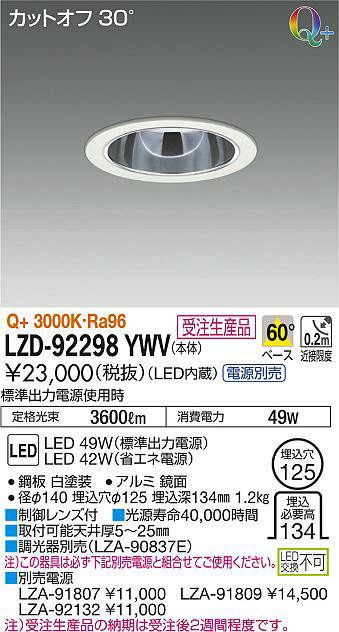¢£ÊÌÇäÅŸ»¡¡LZA-91807 ¡ï11¡¤000¡¡LZA-91809 ¡ï14¡¤500¡¡LZA-92132 ¡ï11¡¤000¡¢Ãí¡Ë¼õÃíÀ¸»ºÉʤÎǼ´ü¤Ï¼õÃí¸å£²½µ´ÖÄøÅ٤Ǥ¹¡£¡¢É¸½à½ÐÎÏÅŸ»»ÈÍÑ»þ¡¡Äê³Ê¸÷« 3600lm¡¡¾ÃÈñÅÅÎÏ 49W¡¢Ra96