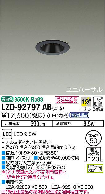 ¢£ÊÌÇäÅŸ»¡¡LZA-92809 ¡ï3¡¤500¡¡LZA-92810 ¡ï6¡¤000¡¢Ãí¡Ë¼õÃíÀ¸»ºÉʤÎǼ´ü¤Ï¼õÃí¸å2½µ´ÖÄøÅ٤Ǥ¹¡£¡¢Äê³Ê¸÷« 390lm ¾ÃÈñÅÅÎÏ 9.5W¡¢Ra83