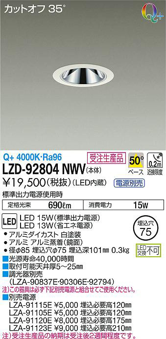 DAIKO Âç¸÷Åŵ¡ ¥À¥¦¥ó¥é¥¤¥È LZD-92804NWV