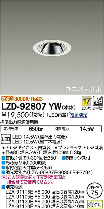 DAIKO Âç¸÷Åŵ¡ ¥æ¥Ë¥Ð¡¼¥µ¥ë¥À¥¦¥ó¥é¥¤¥È LZD-92807YW