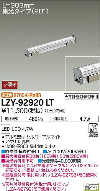 ¢£¸÷¸»¼÷Ì¿40¡¤000»þ´Ö¡¢¢¨ÅŸ»Àܳ»þ¤Ë¤Ïɬ¤ºÅŸ»¥±¡¼¥Ö¥ë¡ÊLZA-92925¡Ë¤¬É¬ÍפǤ¹¡£1²óÏ©¤Ë1Âæ¤ªµá¤á¤¯¤À¤µ¤¤¡£¡¢¢¨ÊɽÄĹÉÕ»þ¡§¼èÉÕÍÑ¥µ¥É¥ë¡ÊLZA-92793¡Ë¤ò¤´»ÈÍѤ¯¤À¤µ¤¤¡£¡¢¢¨Å·°æÉÕÊɲ£Ä¹ÉÕ»þ¡§¼èÉÕÍÑ¥¹¥È¥é¥Ã¥×¡ÊLZA-92792¡Ë¤ò¤´»ÈÍѤ¯¤À¤µ¤¤¡£¡¢Äê³Ê¸÷« 480lm¡¡¾ÃÈñÅÅÎÏ 4.7W¡¢Ra83