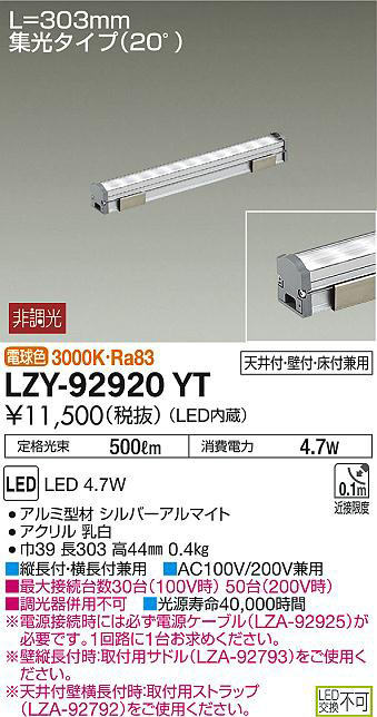 ¢£¸÷¸»¼÷Ì¿40¡¤000»þ´Ö¡¢¢¨ÅŸ»Àܳ»þ¤Ë¤Ïɬ¤ºÅŸ»¥±¡¼¥Ö¥ë¡ÊLZA-92925¡Ë¤¬É¬ÍפǤ¹¡£1²óÏ©¤Ë1Âæ¤ªµá¤á¤¯¤À¤µ¤¤¡£¡¢¢¨ÊɽÄĹÉÕ»þ¡§¼èÉÕÍÑ¥µ¥É¥ë¡ÊLZA-92793¡Ë¤ò¤´»ÈÍѤ¯¤À¤µ¤¤¡£¡¢¢¨Å·°æÉÕÊɲ£Ä¹ÉÕ»þ¡§¼èÉÕÍÑ¥¹¥È¥é¥Ã¥×¡ÊLZA-92792¡Ë¤ò¤´»ÈÍѤ¯¤À¤µ¤¤¡£¡¢Äê³Ê¸÷« 500lm¡¡¾ÃÈñÅÅÎÏ 4.7W¡¢Ra83