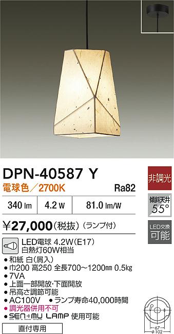 DAIKO Âç¸÷Åŵ¡ ÏÂÉ÷¥Ú¥ó¥À¥ó¥È DPN-40587Y