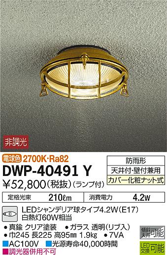 DAIKO Âç¸÷Åŵ¡ ¥¢¥¦¥È¥É¥¢¥é¥¤¥È DWP-40491Y