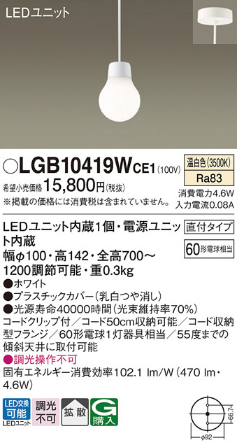 Panasonic ¥Ú¥ó¥À¥ó¥È LGB10419WCE1