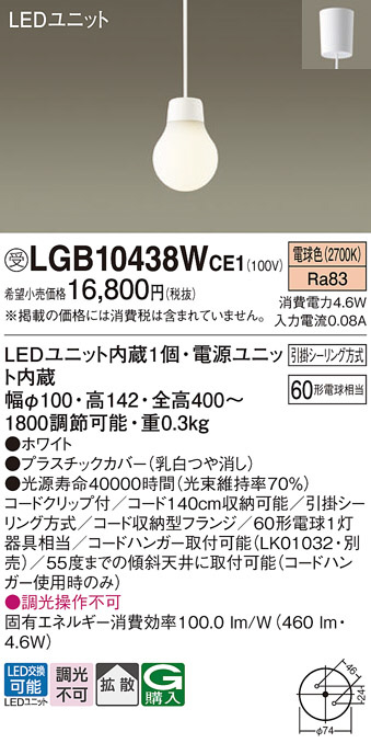 Panasonic ¥Ú¥ó¥À¥ó¥È LGB10438WCE1