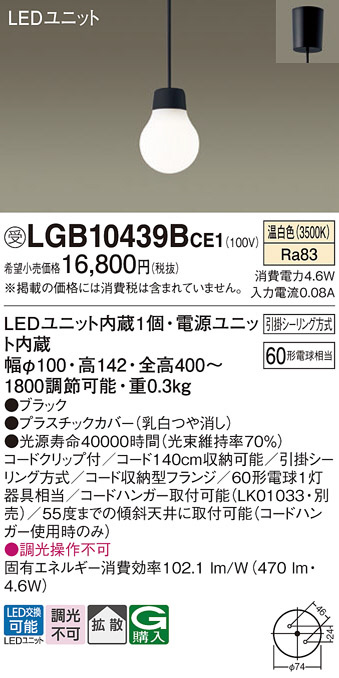 Panasonic ¥Ú¥ó¥À¥ó¥È LGB10439BCE1