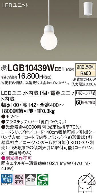 Panasonic ¥Ú¥ó¥À¥ó¥È LGB10439WCE1