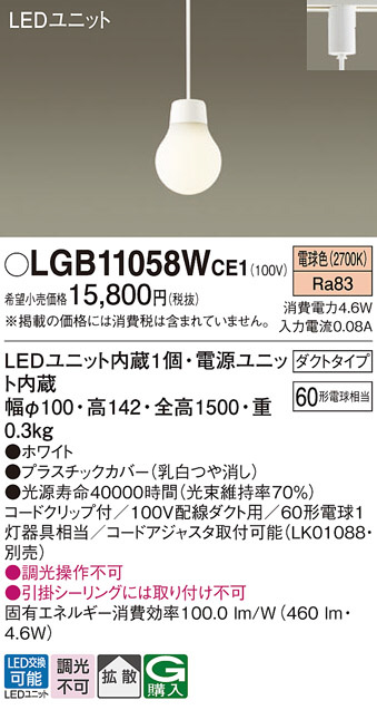 Panasonic ¥Ú¥ó¥À¥ó¥È LGB11058WCE1