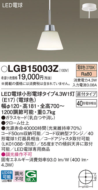Panasonic ¥Ú¥ó¥À¥ó¥È LGB15003Z