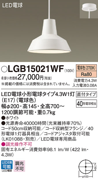 Panasonic ¥Ú¥ó¥À¥ó¥È LGB15021WF