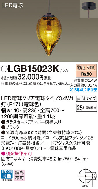 Panasonic ¥Ú¥ó¥À¥ó¥È¥é¥¤¥È LGB15023K