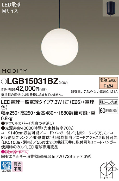 Panasonic ¥Ú¥ó¥À¥ó¥È LGB15031BZ