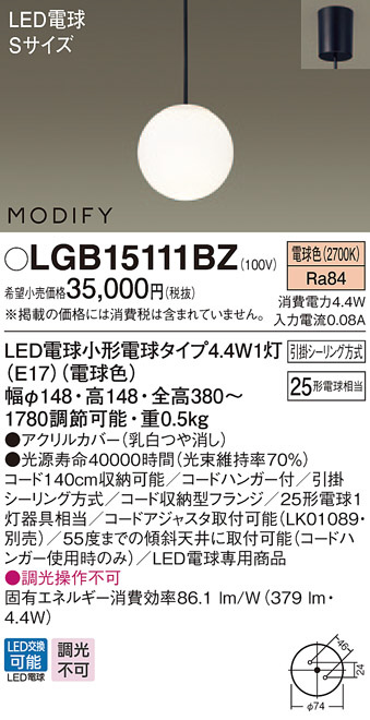 Panasonic ¥Ú¥ó¥À¥ó¥È LGB15111BZ