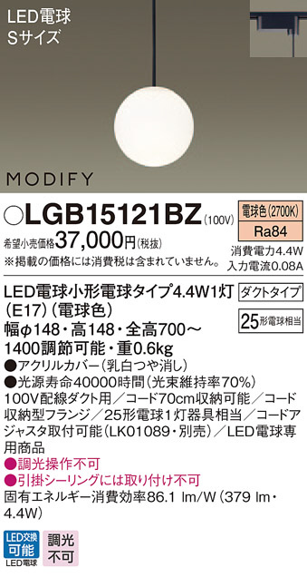 Panasonic ¥Ú¥ó¥À¥ó¥È LGB15121BZ