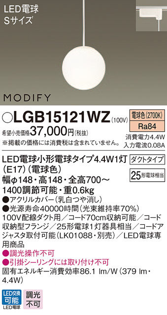 Panasonic ¥Ú¥ó¥À¥ó¥È LGB15121WZ