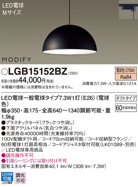 Panasonic ¥Ú¥ó¥À¥ó¥È LGB15152BZ