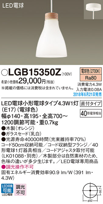 Panasonic ¥Ú¥ó¥À¥ó¥È¥é¥¤¥È LGB15350Z