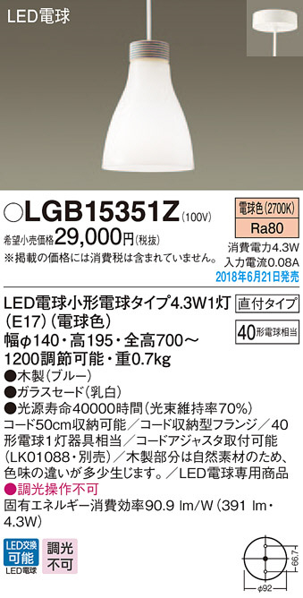 Panasonic ¥Ú¥ó¥À¥ó¥È¥é¥¤¥È LGB15351Z