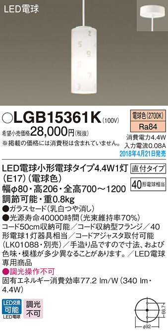 Panasonic ¥Ú¥ó¥À¥ó¥È¥é¥¤¥È LGB15361K