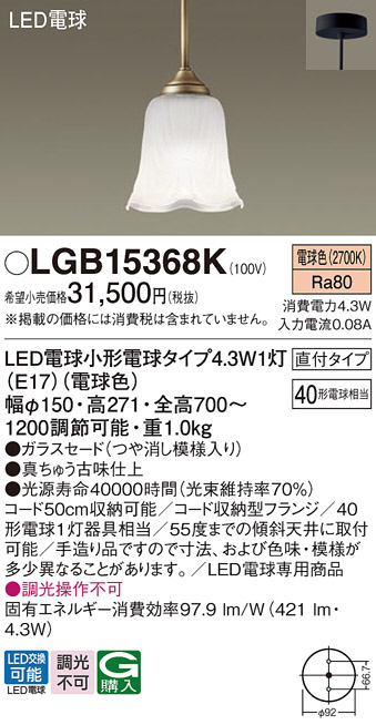 Panasonic ¥Ú¥ó¥À¥ó¥È LGB15368K