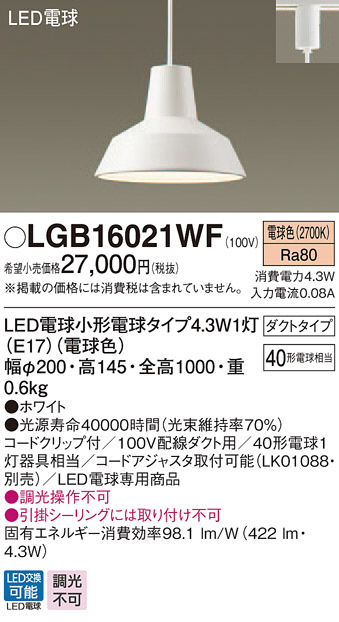 Panasonic ¥Ú¥ó¥À¥ó¥È LGB16021WF