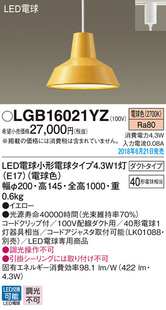 Panasonic ¥Ú¥ó¥À¥ó¥È¥é¥¤¥È LGB16021YZ