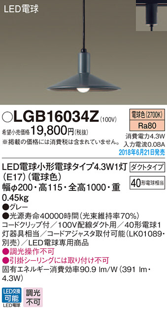 Panasonic ¥Ú¥ó¥À¥ó¥È¥é¥¤¥È LGB16034Z