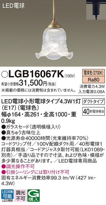 Panasonic ¥Ú¥ó¥À¥ó¥È LGB16067K