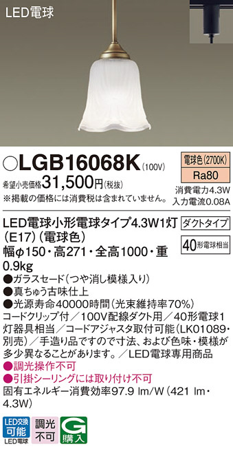 Panasonic ¥Ú¥ó¥À¥ó¥È LGB16068K