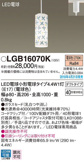 Panasonic ¥Ú¥ó¥À¥ó¥È¥é¥¤¥È LGB16070K