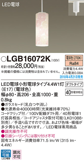 Panasonic ¥Ú¥ó¥À¥ó¥È¥é¥¤¥È LGB16072K