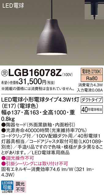Panasonic ¥Ú¥ó¥À¥ó¥È LGB16078Z