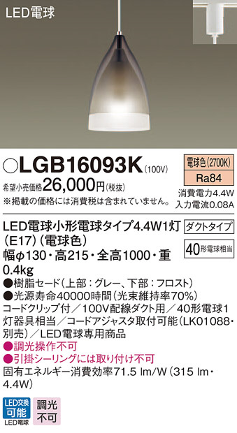 Panasonic ¥Ú¥ó¥À¥ó¥È LGB16093K