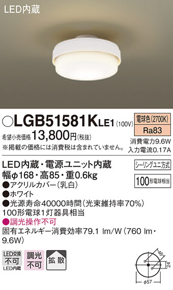 Panasonic ¥·¡¼¥ê¥ó¥°¥é¥¤¥È LGB51581KLE1