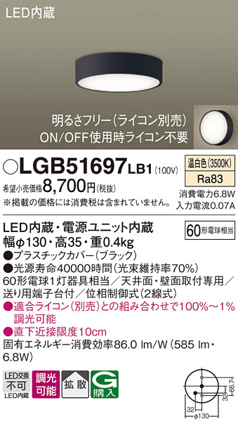 Panasonic ¥·¡¼¥ê¥ó¥°¥é¥¤¥È LGB51697LB1