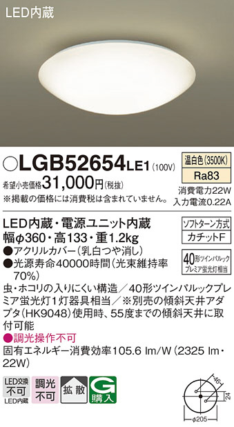 Panasonic ¥·¡¼¥ê¥ó¥°¥é¥¤¥È LGB52654LE1