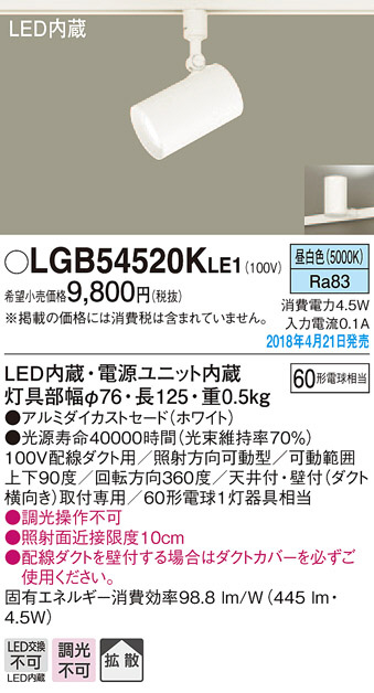 Panasonic ¥¹¥Ý¥Ã¥È¥é¥¤¥È LGB54520KLE1