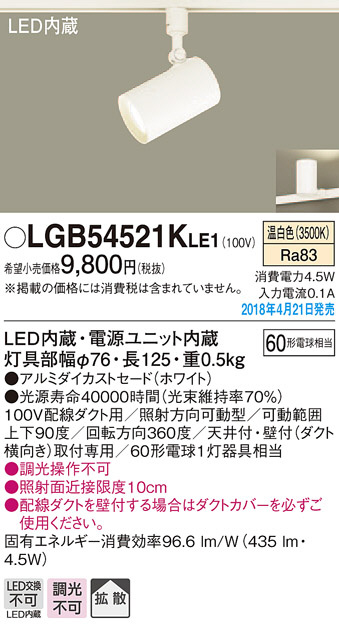 Panasonic ¥¹¥Ý¥Ã¥È¥é¥¤¥È LGB54521KLE1