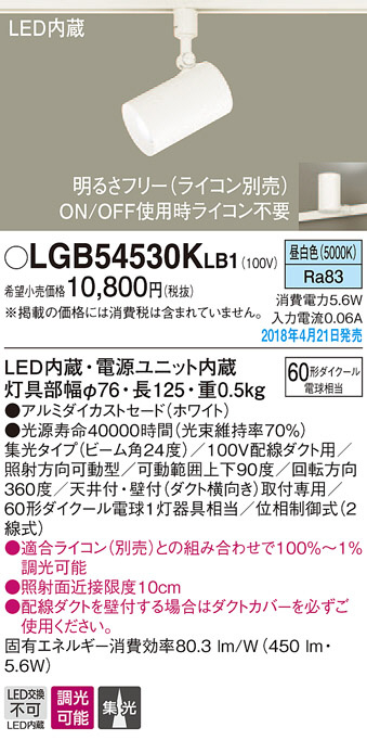 Panasonic ¥¹¥Ý¥Ã¥È¥é¥¤¥È LGB54530KLB1