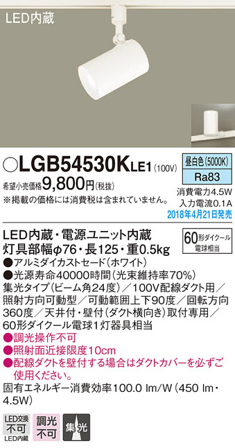 Panasonic ¥¹¥Ý¥Ã¥È¥é¥¤¥È LGB54530KLE1
