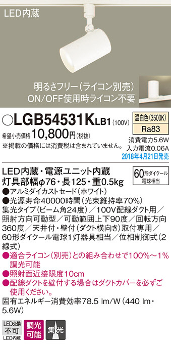 Panasonic ¥¹¥Ý¥Ã¥È¥é¥¤¥È LGB54531KLB1