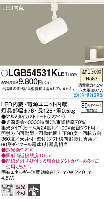 Panasonic ¥¹¥Ý¥Ã¥È¥é¥¤¥È LGB54531KLE1