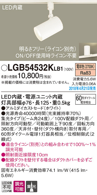 Panasonic ¥¹¥Ý¥Ã¥È¥é¥¤¥È LGB54532KLB1