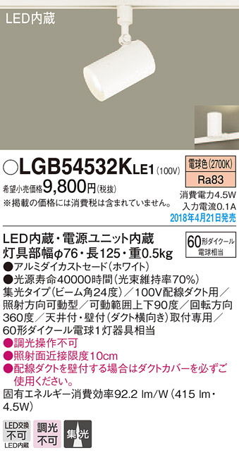 Panasonic ¥¹¥Ý¥Ã¥È¥é¥¤¥È LGB54532KLE1